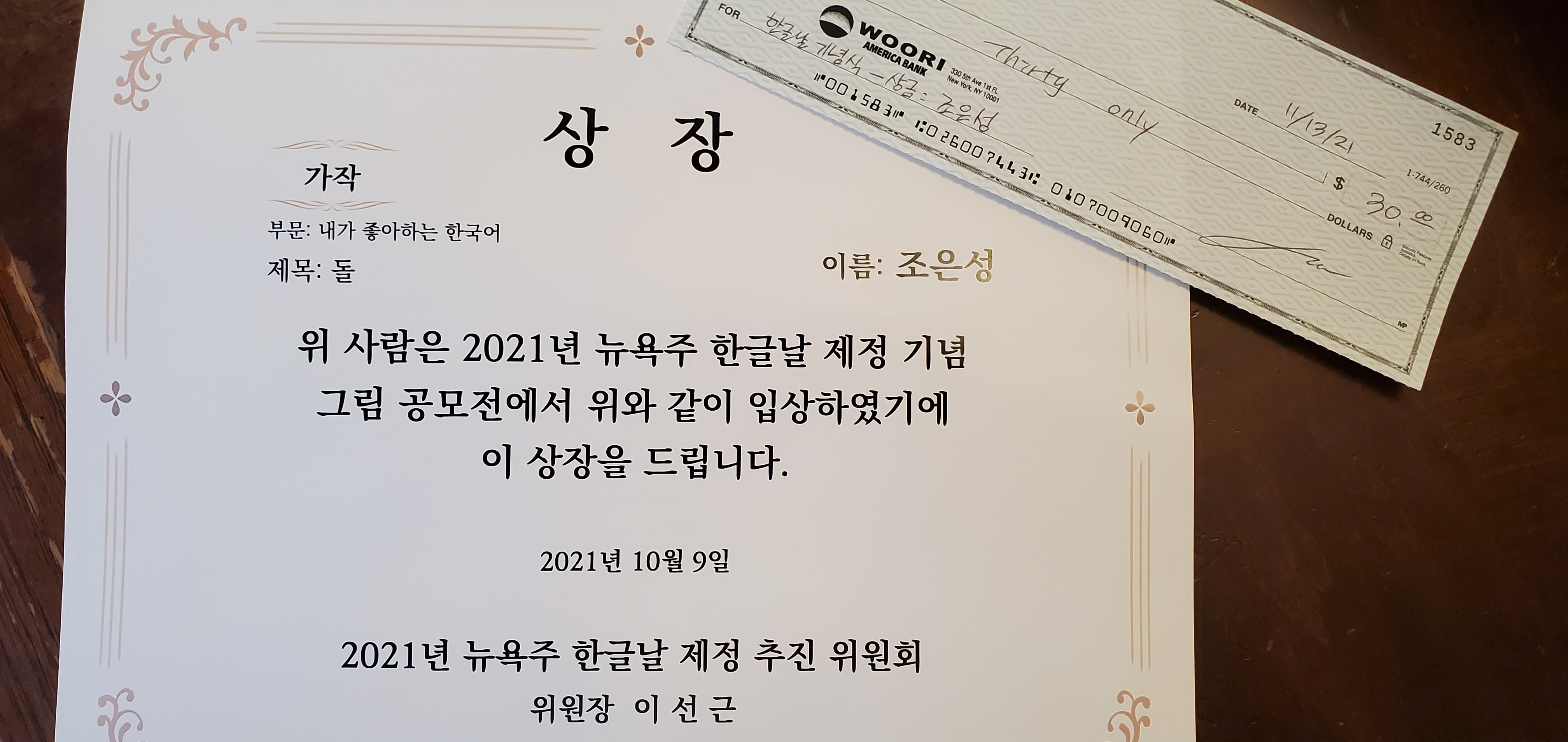 2021년 뉴욕주 한글날 제정 기념 그림 공모전 입상