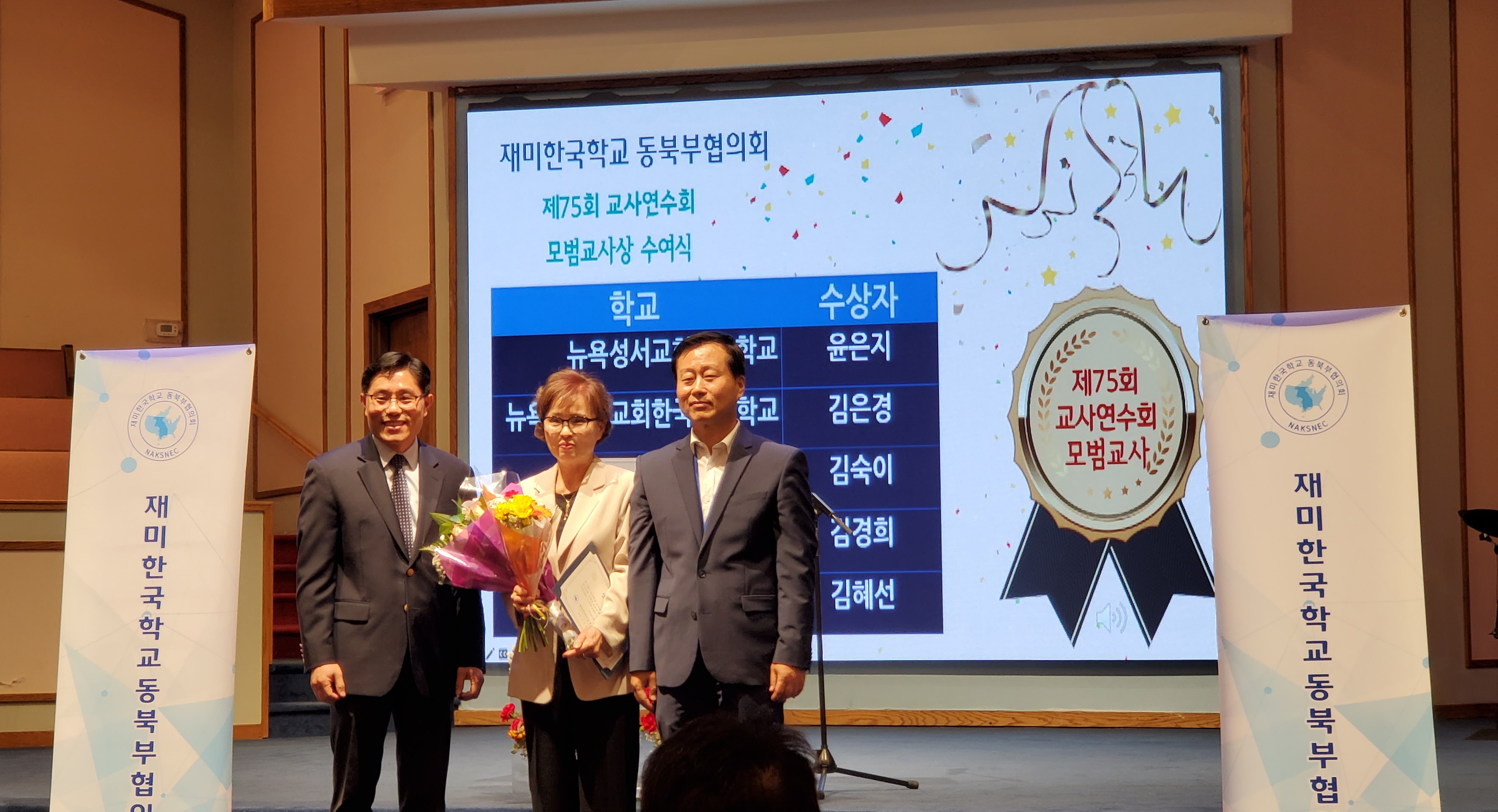 제75회 재미 한국학교 동북부 협희회 모범 교사상 지난 29년간 한결같이 한국학교를 위해 힘써주신 김혜선 교감 선생님께서 제75회 재미 한국학교 동북부 협희회에서그 공로를 인정받아 모범 교사상을 수상하셨습니다. Photo Room 2023.09.02